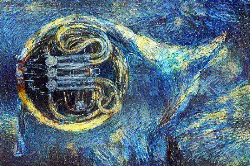With this project, I endeavored to apply my knowledge of machine learning to some creative end. It is a python implementation of the paper "A Neural Algorithm of Artistic Style" by Gayts et al. The system uses feature representations of images in a neural network to separate and recombine the content of one image with style of another image. Essentially, to create the combined image, a loss function is devised which accounts for the content of an image and the style of another image, and the script finds the image that minimizes this loss function. The above image is a gif of the minima of the loss function at different iterations, showing a french horn in the style of Starry Night by Van Gough. The project uses Keras with Tensorflow backend.